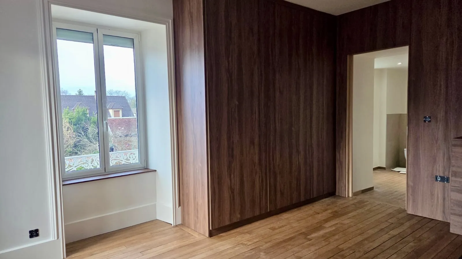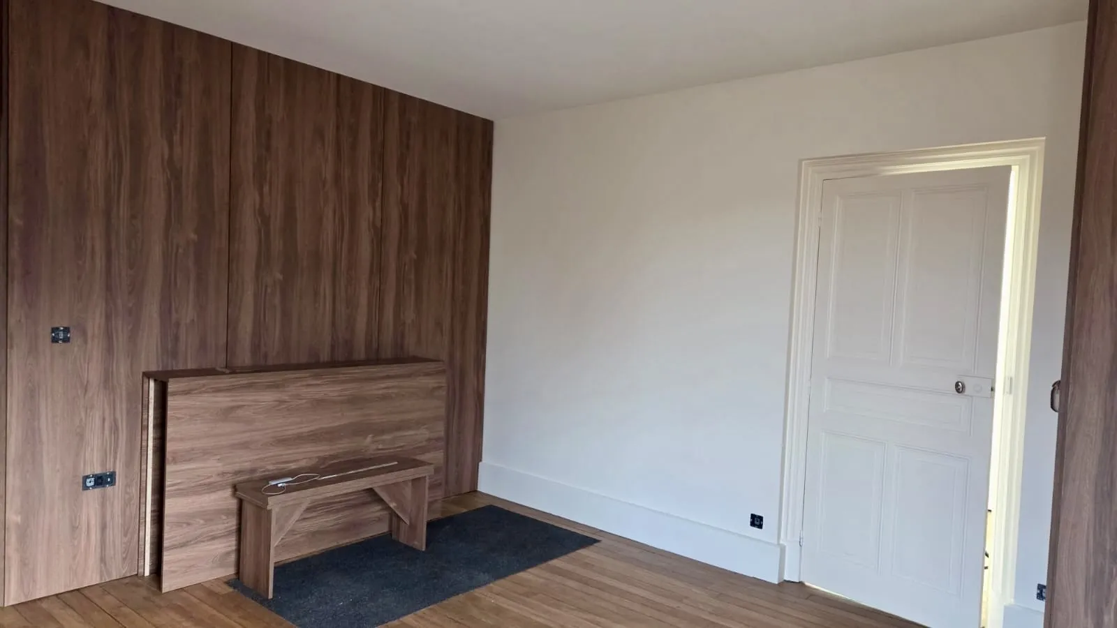 Travaux de peinture intérieure : Préparation des supports muraux et plafond, application des couches de finition sur murs et menuiseries pour un rendu propre et uniforme.