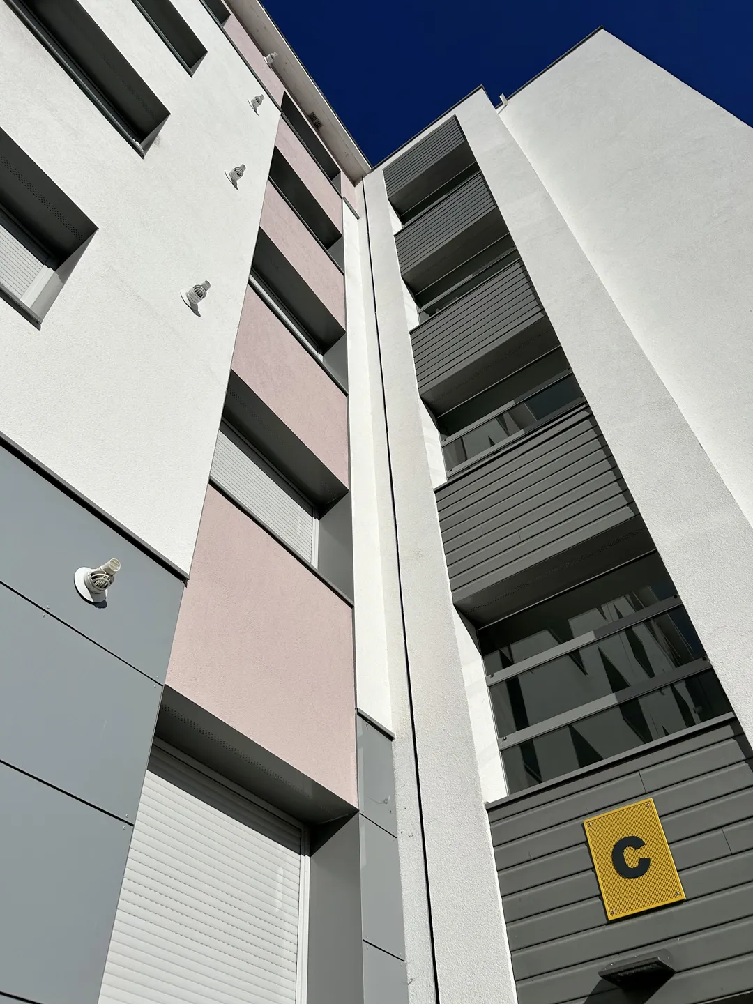 Traitement des points singuliers, installation de l’isolant par panneaux PSE, mise en place de l'ossature pour le bardage ventilé, habillage en panneaux composites et finitions soignées en enduit mince.