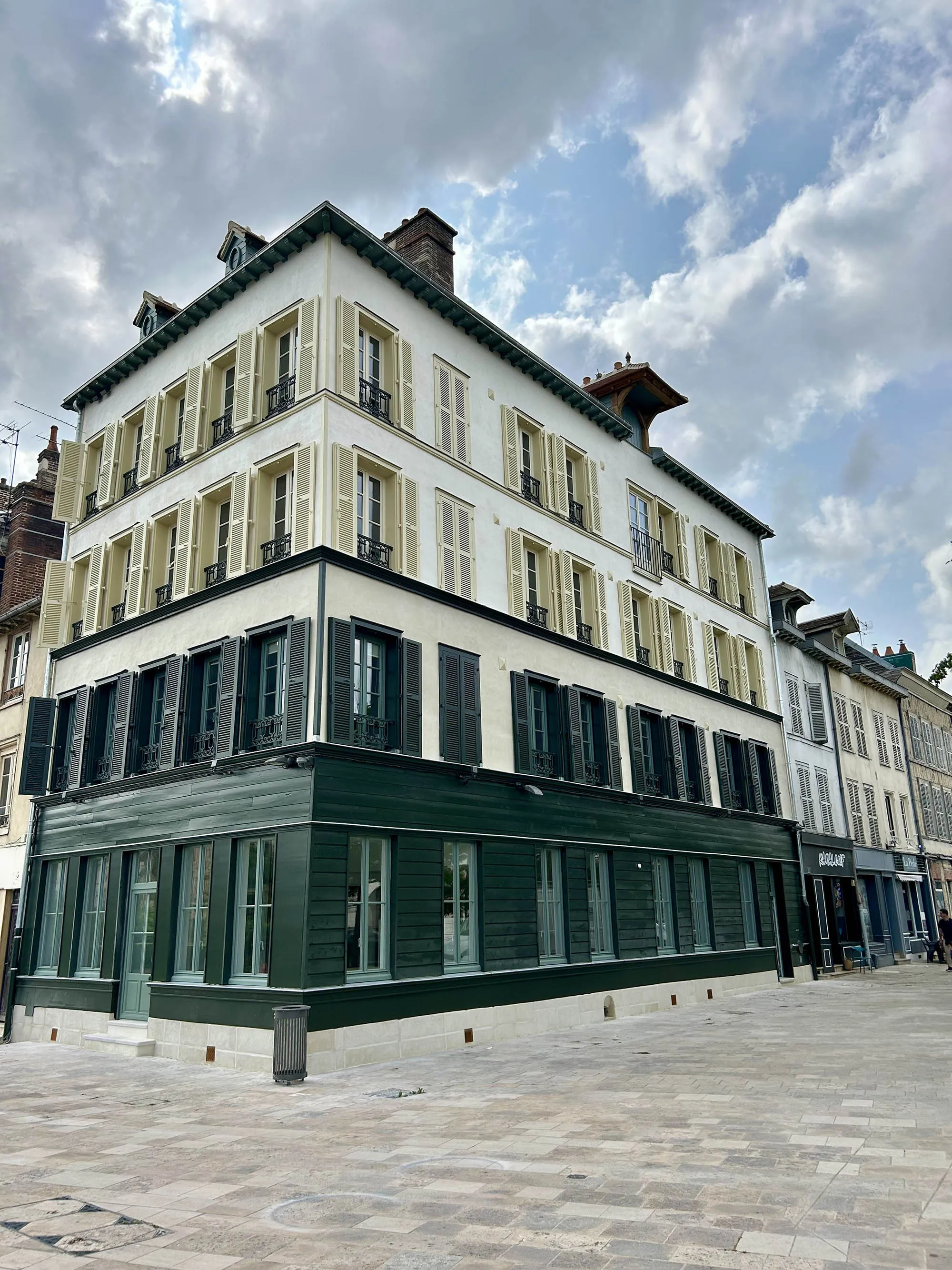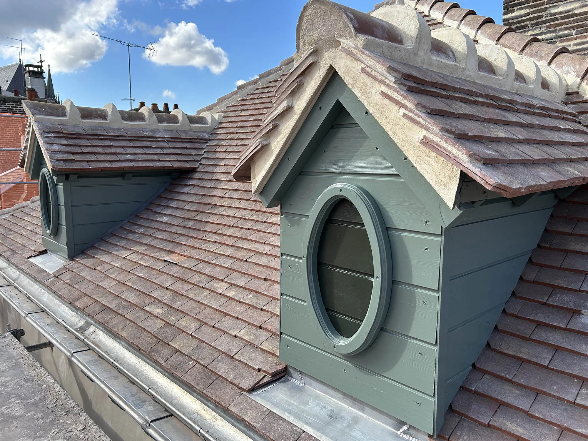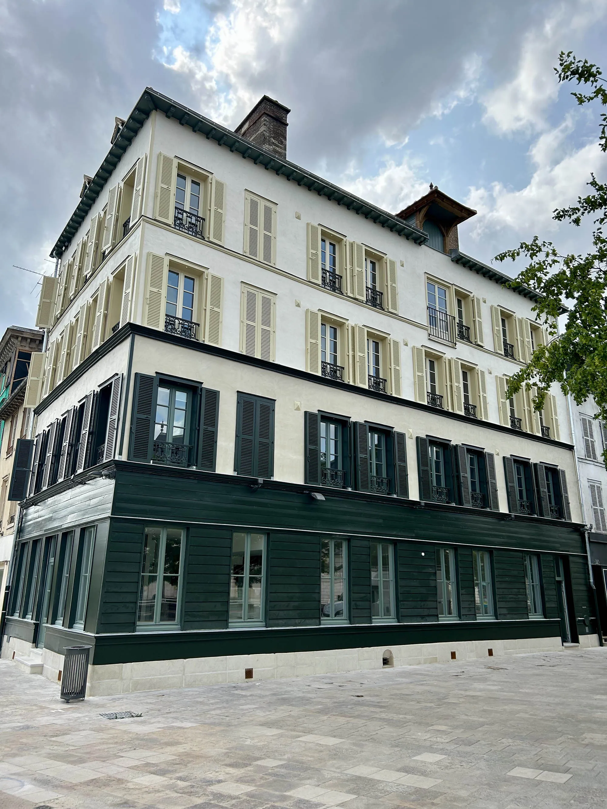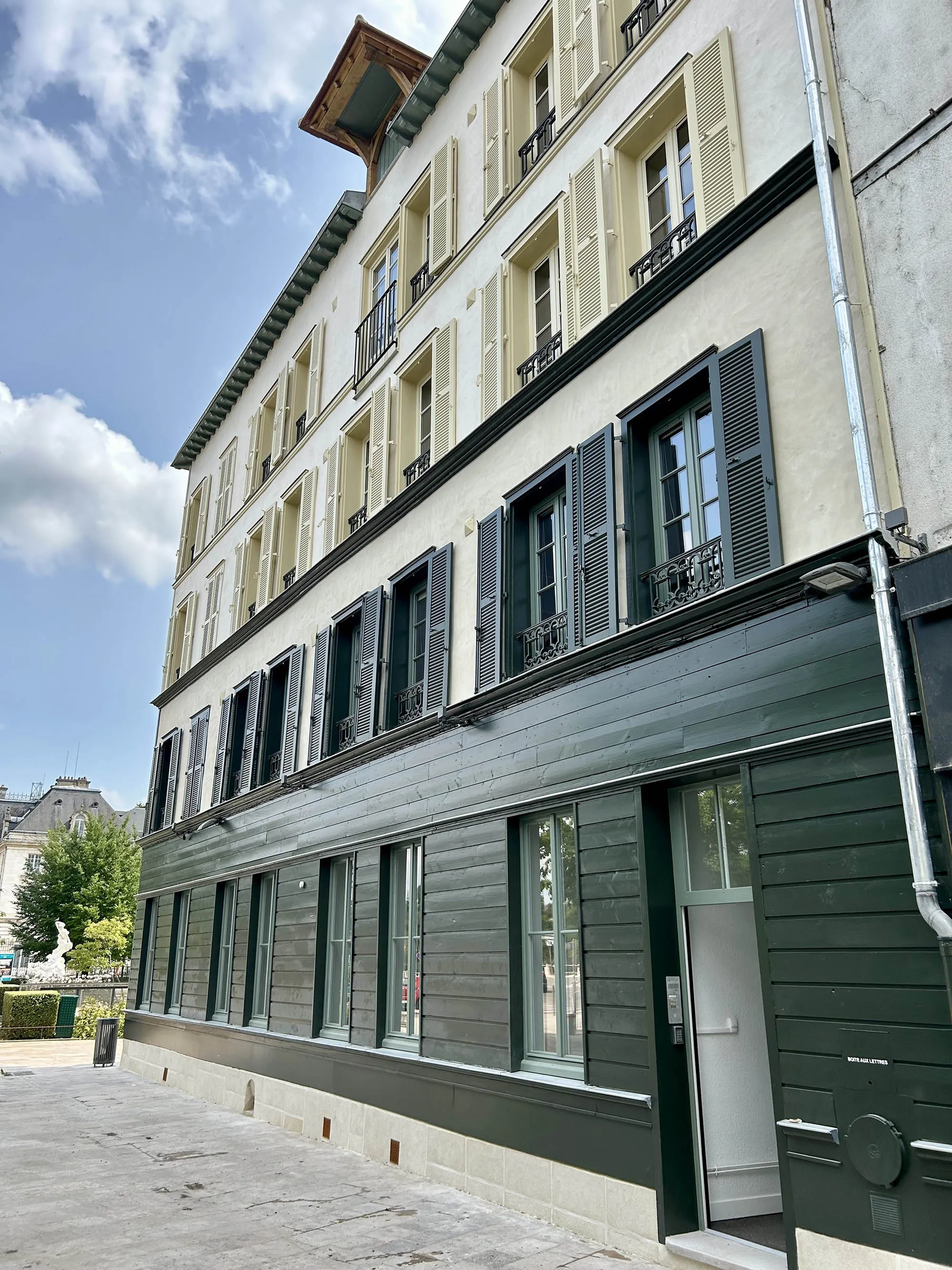 Ravalement de façade : nettoyage, mise en peinture du bardage, remise en peinture de certains murs et traitement des éléments métalliques et des boiseries présents sur l’ouvrage.