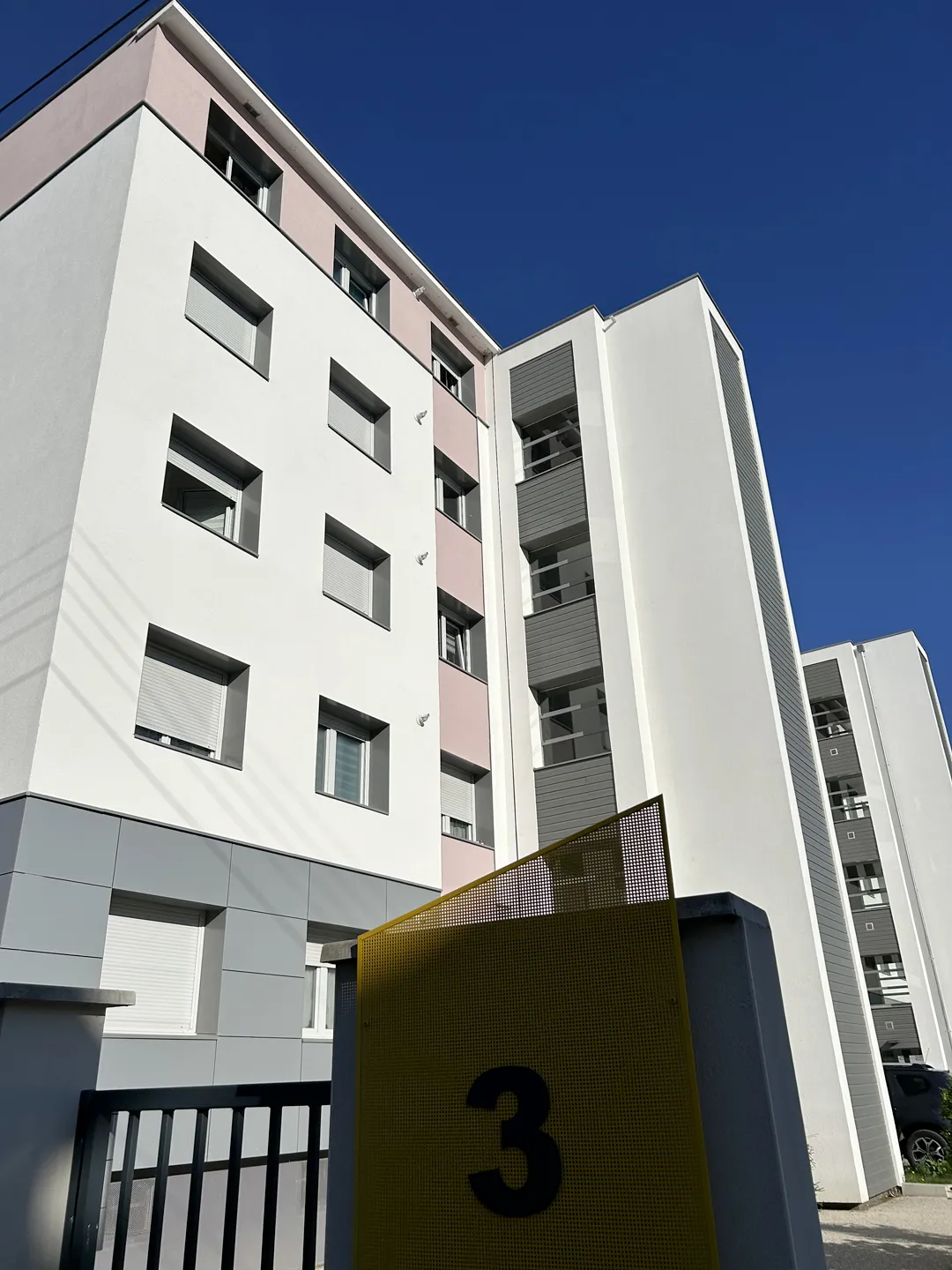 Isolation thermique par l’extérieur avec pose d’un bardage en panneaux composite et encadrements métalliques.